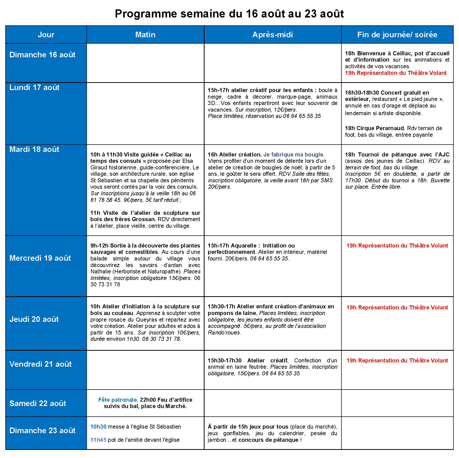 - Le comité des fêtes organise son deuxième concours « d’écriture d’un conte » sur le thème du chemin des contes et légendes. Règlement sur demande à animation@ceillac.fr