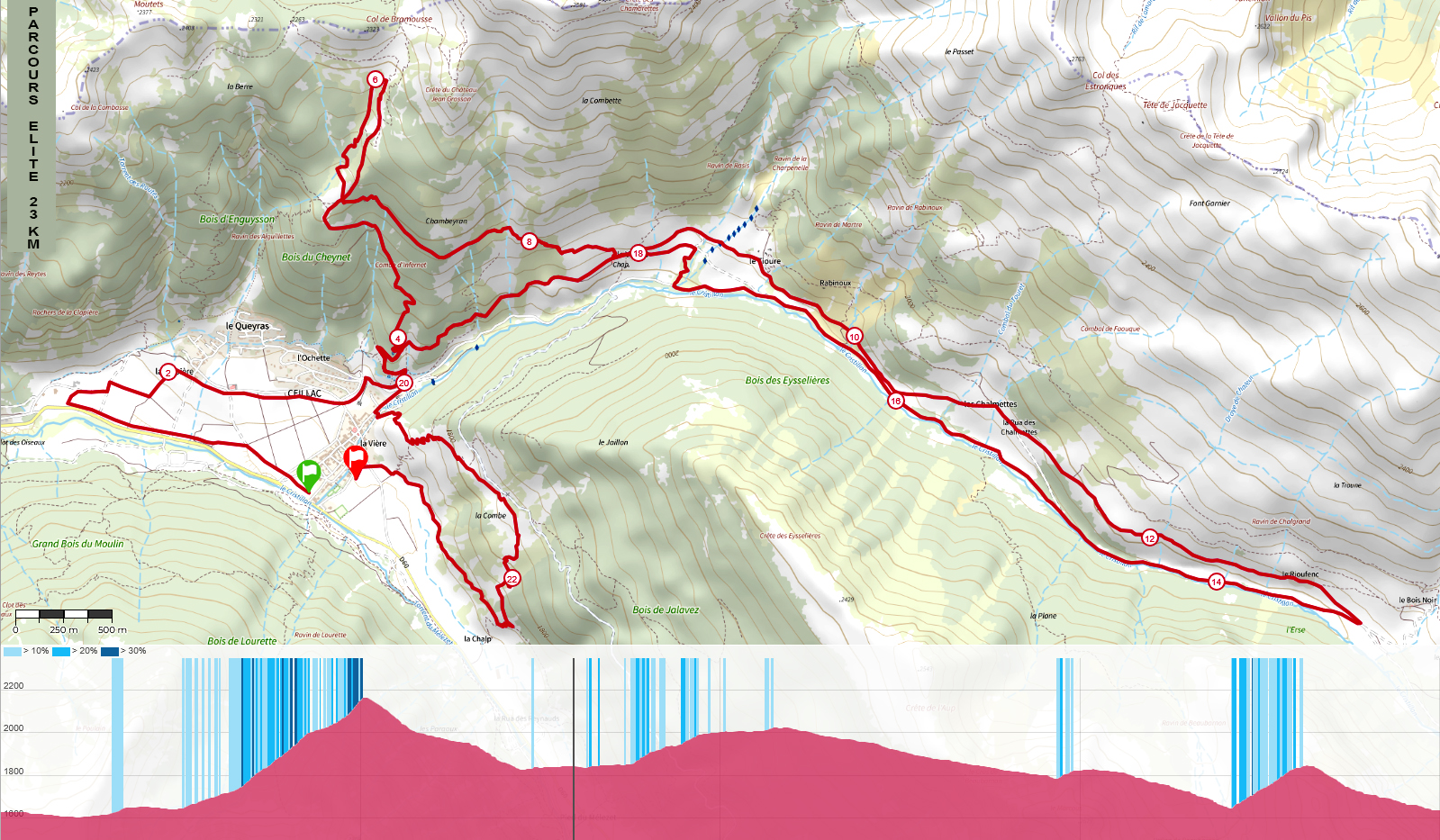■ Détails du parcours Élite ~ 220 coureurs max. (un clic sur la carte pour agrandir)