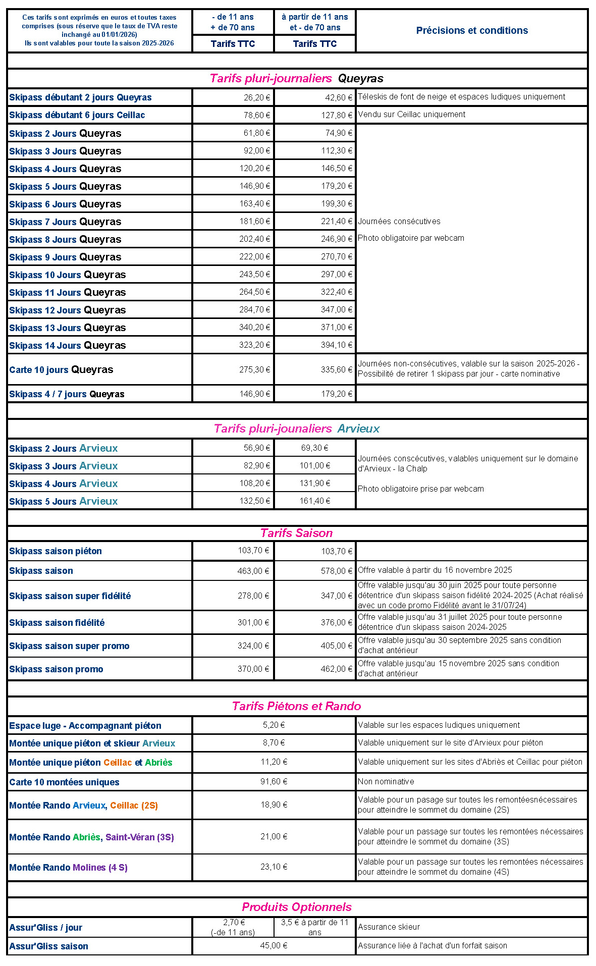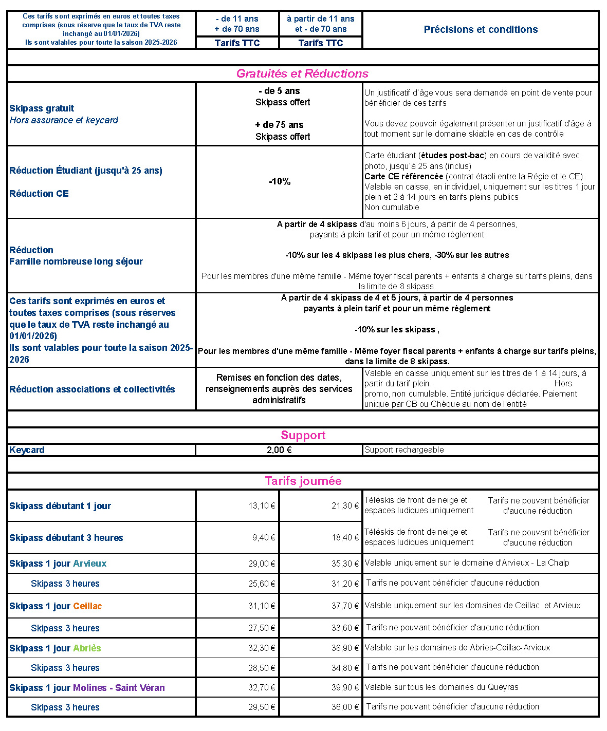 Ils sont en vente aux caisses du front de neige et aussi au centre d’accueil situé au pied du village.