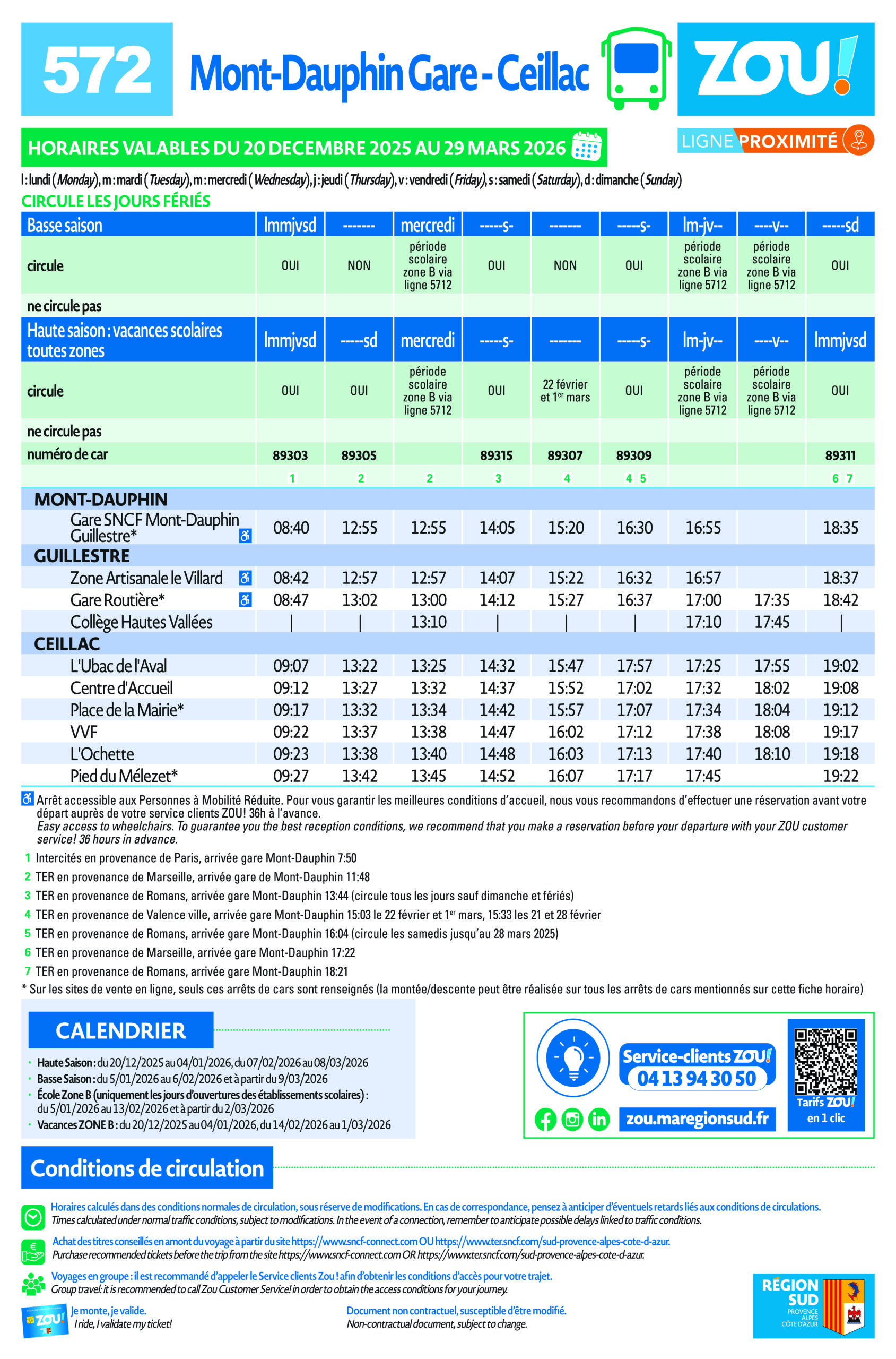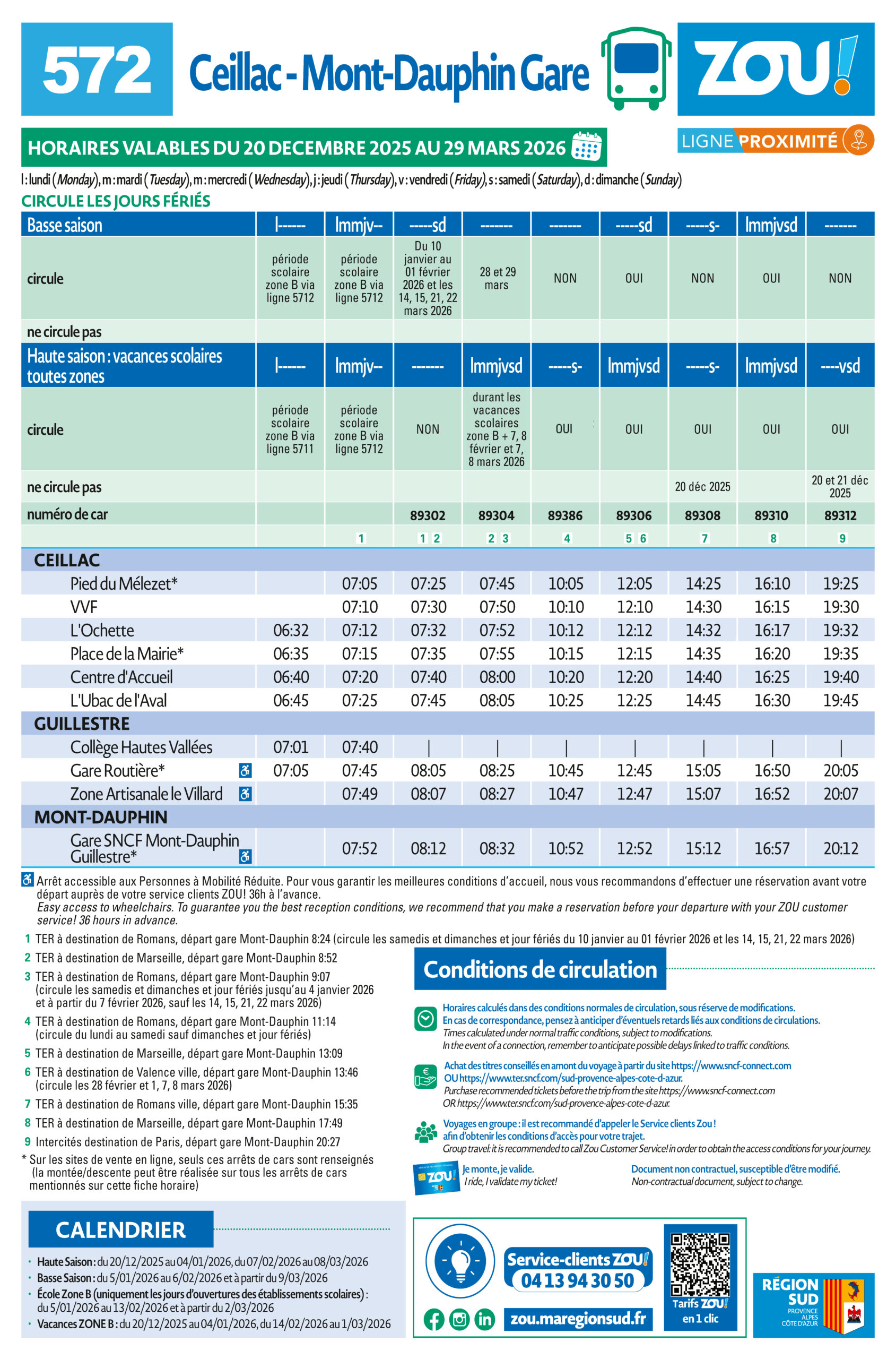 Horaires ligne ZOU n°572 Montdauphin-Guillestre-Ceillac :